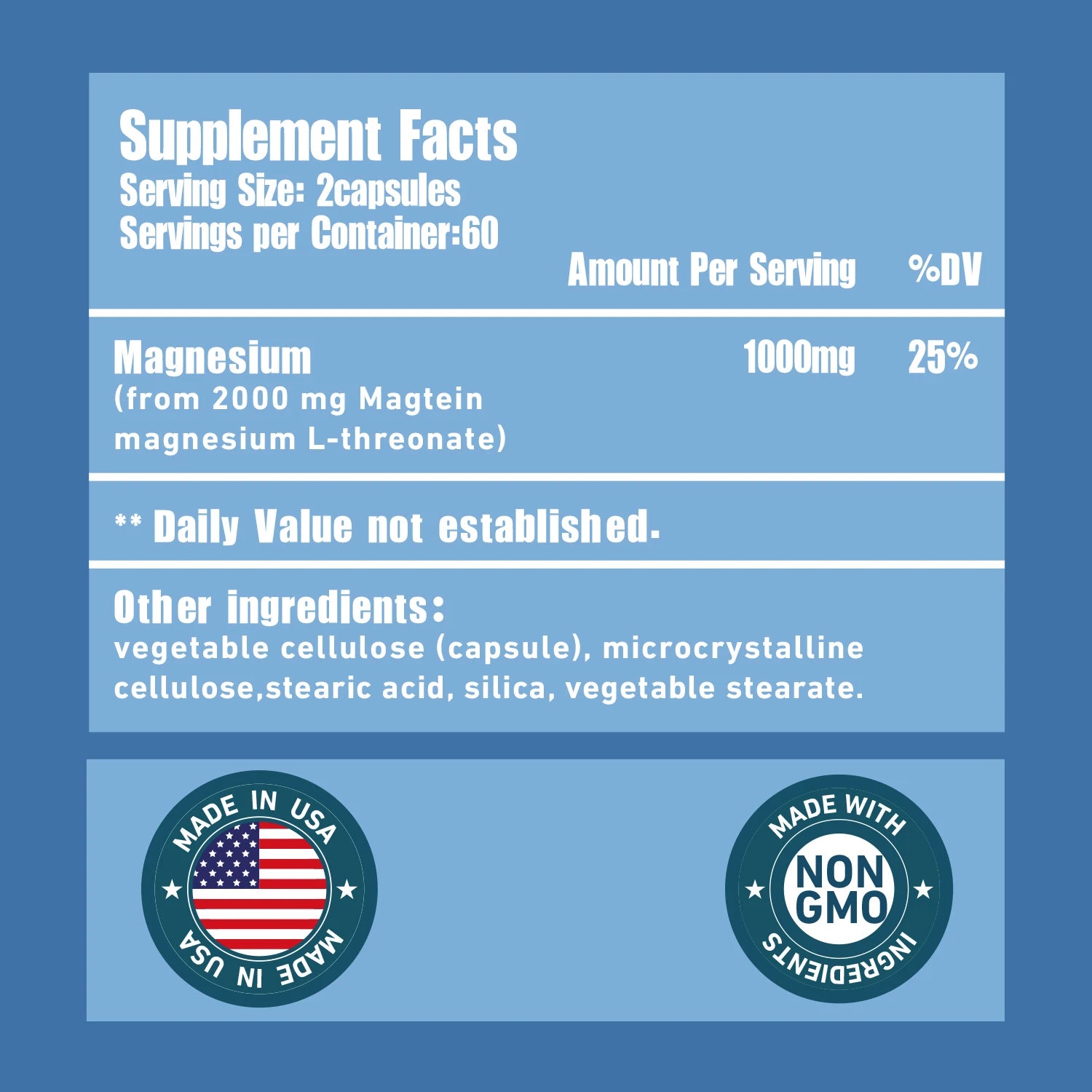Enhance your brain health, memory, and focus with Pslalae Magnesium L-Threonate Capsules. Designed for optimal absorption, this premium magnesium supplement supports nerve energy, learning, and restful sleep, making it a perfect addition to your daily wellness routine.